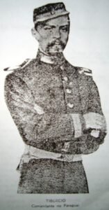 “O 26º Voluntarios da Pátria – Lê-se no mesmo jornal: “Consta-nos que Leopoldina partiu hontem às 8 horas da manhã de Santa Catharina e deve chegar hoje, trazendo o 26º Voluntarios. A breve resenha que vamos fazer, dos brilhantes feitos d’esse batalhão, bastará para recommendá-lo à gratidão nacional. Embarcou nesta Corte para Montevidéo, com destino à Campanha do Paraguay, em junho de 1865 – Acampou na República Argentina, junto ao Arroio Juquery em julho do mesmo anno. Em agosto marchou com o Exército, atravessando-o as províncias de Entre-Rios e Corrientes, indo acampar na Lagôa Brava, e sucessivamente em Tala-Corá. Fez parte da divisão que primeiro pisou o território paraguayo e primeiro bateu as forças inimigas, sendo mencionado de modo muito honroso pelos serviços prestados nos combates de 16 e 17 de abril, os quaes guiou-o o seu distincto commandante, então major Francisco Frederico Figueira de Mello, de saudosa memória. Conquistou glorioso nome dos ataques de 2 e 24 de maio, 16 e 18 de julho de 1866, sendo concordes todos os chefes de divisões e brigadas em considera-lo um dos corpos mais disciplinadores e intrépidos. A 2 de maio ia este distincto batalhão sendo victima de seu admiravel valor. Avançando-se até muito perto do entrincheiramento do inimigo, viu-se inesperadamente com a retirada cortada por forças de infantaria e de cavallaria em numero, o 26º de volluntarios, tendo aberto o caminho à bayoneta, voltou ao nosso campo, com perda de uns 80 homens talvez, trazendo porém a bandeira gloriosa, que recebera das mãos dos cearenses. A 24 de maio e a 16 e 18 de julho, do mesmo modo sustentou elle o credito, que já conquistára nos feitos anteriores. Fazendo parte da 1ª divisão de infantaria, ao mando junto á mata do Potrero Piris, sujeito à toda costa de fadigas inherentes ao serviço da vanguarda. Fez com o 1º Corpo do Exercito, a que pertencia em julho de 1867, a marcha do flanco sobre Tuyu-Cué, onde acampou a 31 de julho do dito mez. Fazendo parte da força que occupou Tayi, alli esteve destacado desde 2 de novembro de 1867 até 17 de agosto de 1868, em que achou com o exército em perseguição ao inimigo para Tebiquary, seguindo até Surubihy. A 29 de outubro, embarcou para o Chaco, indo alli reunir-se ao 2º Corpo do Exército, acompanhando-o nos penosos trabalhos começados pelo bravo Coronel Tibúrcio, que se retirou gravemente doente e terminados pelo distincto general Argollo, que jamais cessou de fazer os mais significativos elogios a 26 de Voluntarios. A 4 de dezembro embarcou com destino ao território paraguayo, desembarcando na manhã de 5 na barranca denominada – Santo Antonio. Tomou parte muito activa no ataque de 6 a parte de Itororó, onde bem mereceu de seus chefes. Ahi teve fóra de combate cento e tantos homens entre os quaes o seu comandante, feridos varios officiaes, e mortos outros, cuja bravura não desmentira o nome tradicional de seu batalhão. Entrou ainda no batalhão de 11, em Avahy, conquistando mais uma vez merecidos louvores por sua disciplina e bravura. Teve por commandantes quatro officiaes distinctos Tenente-Coronel Francisco Frederico de Mello; Major Sebastião Tamborim, da província do Ceará, Tenente-Coronel Gabriel de Souza Guedes, da de Pernambuco, e o Major Domingos Alves Barreto Leite, da do Rio Grande do Sul, dos quaes somente existe o ultimo. Pode se talvez dizer sem receios de errar que o 26 não consta em seu seio cincoenta homens que não houvessem sido tocados pela balla ou ferro inimigo. Depois de tão nobres serviços foi o 26º de voluntarios dissolvido em Villella, por ordem do general em chefe o Sr. duque, então Marquez de Caxias, que aliás lhe dispensára elogios na ponte de Itororó. felizmente o Sr, Conde D’Eu, correspondendo aos votos da imprensa da provincia e de todos os cearenses, reorganizou o unico batalhão que representava d’entre tantos milhares de cidadãos que nobremente marcharam para a guerra, e deu-lhe para commandante um dos mais illustres militares, digno por sua intelligencia e bravura, da prova de consideração que acaba de receber do principe commandante em chefe. Amanhã daremos um resumo dos feitos gloriosos, que foram a aureola do tenente-coronel Antônio Tibúrcio Ferreira de Sousa, o BRAVO COMMANDANTE DESSA PLEIADE DE BRAVOS.”