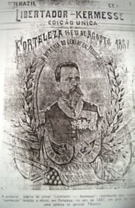 A primeira página do jornal “Libertador”, edição única, distribuída por ocasião das “Kermesses” levadas a efeito, em Fortaleza no ano de 1887, em prol da ereção de uma estátua ao general Tibúrcio.