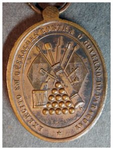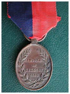Medalha de Prata da Campanha do Uruguai – A 15 de dezembro de 1869, foi público ter-lhe sido conferida a medalha de prata da Campanha do Uruguai, em atenção aos relevantes serviços prestados na mesma campanha. (Foto: Acervo fotográfico do Comando da 10ª região Militar/ General-de-Divisão Lima Verde).