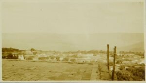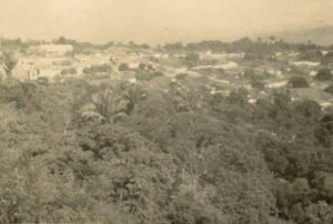 A meus pés ficava a cidade com sua casaria, suas ruas e travessas visivelmente delineadas, e à direita, no cimo, os recortes da serrania coroada de ciridente vegetação, cujo verde sombrio e carregado constrastava com o azul suave que se distende em frente.