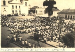 Tudo quanto a Viçosa tem de mais selecto sem distincção politica, na mais effusiva communhão de pensamento e de idéas, achava-se presente no lindo palacete dos amigos coronel Lamartine e Alfredo, o qual estava um mimo, todo enfeitado de arcadas de palmeiras, bandeiras, bem como um grande quadro allegorico, representando as mais urgentes necessidades da terra.
