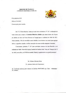 2019Indicação do  nome para compor a Comissão Histórica Jubilar da Diocese de Tianguá.
